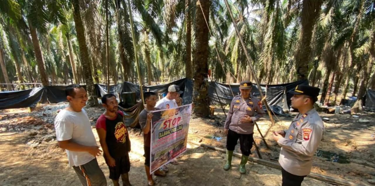 KELUANG, CM- Kapolsek Keluang IPTU Alvin Adam Armita Siahaan STr K bersama jajaran Polsek Keluang, Selasa (27/5/2025) turun ke lapangan memberikan himbauan kepada pelaku usaha Ilegal Drilling agar melakukan penutupan Sumur minyak/ilegal Driliing secara mandiri.