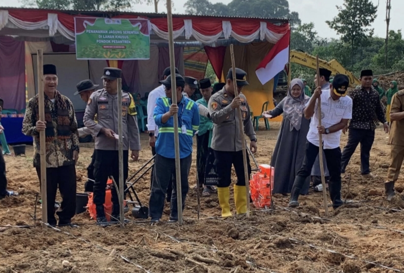 Polsek Sanga Desa Tanam Jagung di Ponpes, Dukung Ketahanan Pangan Nasional