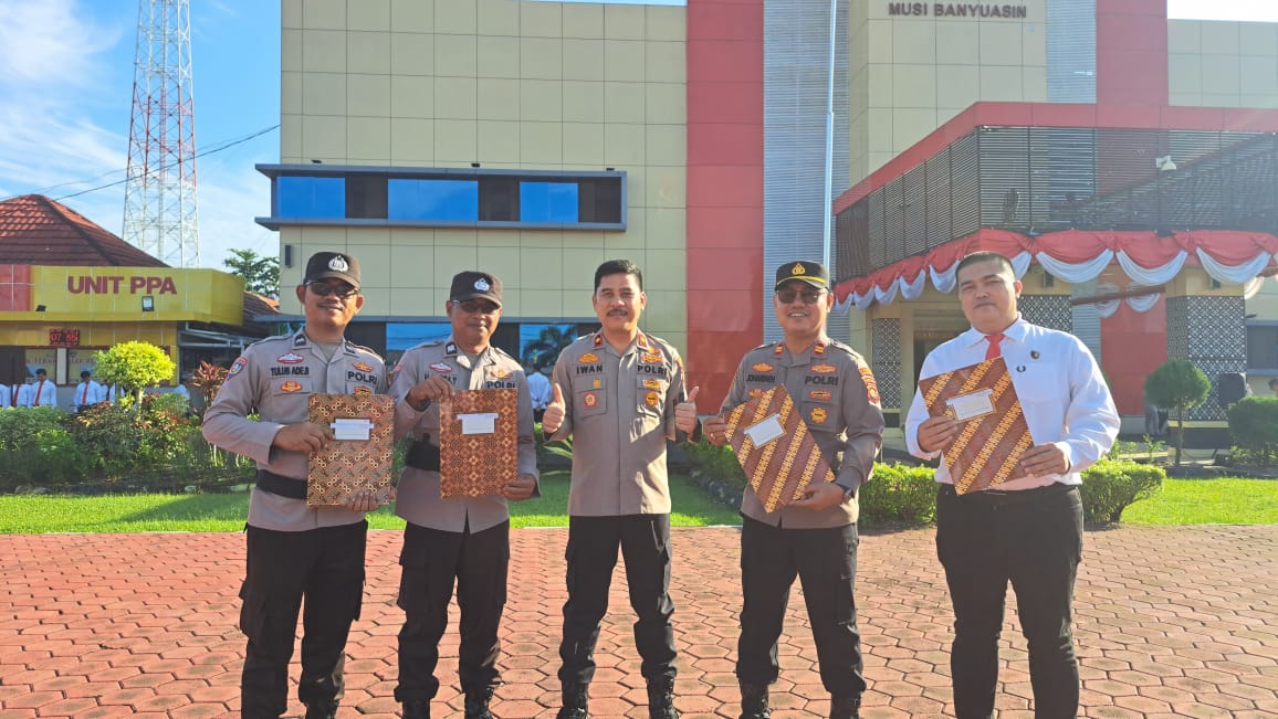 MUSI BANYUASIN, CM – Prestasi membanggakan kembali ditorehkan oleh jajaran Polsek Sanga Desa. Kapolsek Sanga Desa, IPTU Joharmen, S.H., M.Si., beserta Kanit Reskrim IPDA Heri Fitha, S.H. dan sejumlah personel lainnya menerima penghargaan atas integritas dan dedikasi kinerja yang tinggi dari Kapolres Musi Banyuasin.